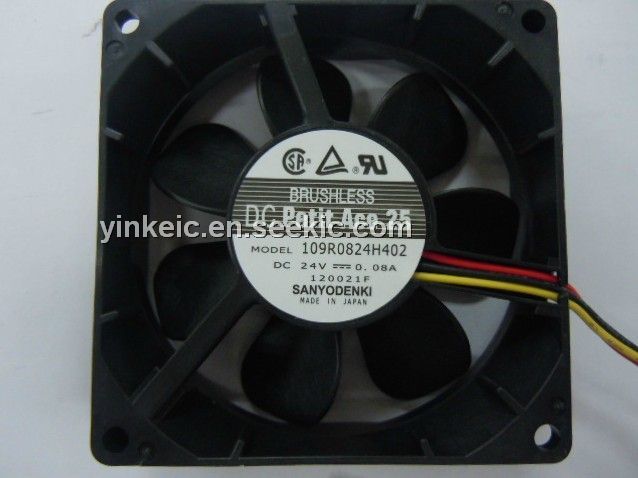 109R0824H402 features: (1)Material: Frame, Impeller:Plastics; (2)Life Expectancy: Varies for each model (Survival rate: 90% at 60℃,rated voltage,and continuously run in a free air state); (3)Motor Protection SystemL: Current blocking function (with reverse polarity protection); (4)Dielectric Strength: 50/60 Hz, 500VAC, 1 minute (between lead conductor and frame); (5)Noise Measurement Method: Measured at 1m from the air inlet; (6)Operating Temprature Range: Varies for each model (Non-condensing); (7)Mass: 170g.