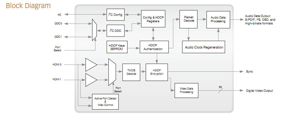 The ANX8770 is a dual port deep-color recevier. The device supports 24, 30 or 36 bit deep color video modes and allows support for up to 36bpp in SDR mode. The ANX8770 also supports high bit-rate compressed audio modes.