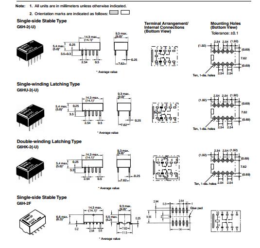 G6H-2-12V features: (1)Compact size and low 5-mm profile; (2)Low power consumption (140 mW for single-side stable, 100 to 300 mW for latching type) and high sensitivity; (3)Low thermoelectromotive force; (4)Low magnetic interference enables high-density mounting; (5)Single- and double-winding latching types also available.