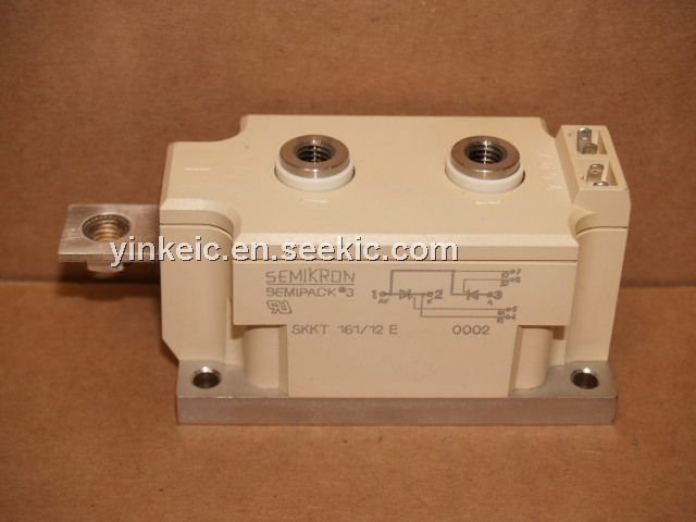 SKKT161 12E features: (1)Heat transfer through aluminium oxide ceramic isolated metal baseplate; (2)Hard sodered jounts for high reliability; (3)UL recognized, file no.E 63 532.