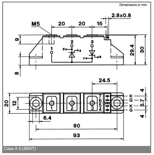 SKKT92 16E features: (1)Heat transfer through aluminium oxide ceramic isolated metal baseplate; (2)Hard sodered jounts for high reliability; (3)UL recognized, file no.E 63 532.