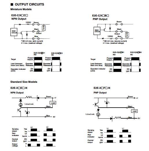 E2E-X5E2 features: (1)Thick nickel-plated brass barrel has wrench flats for easy installation; (2)Solid potted internal circuitry withstands shocks and water washdown to IP67; (3)High visibility indicator; (4)Miniature and standard sizes.